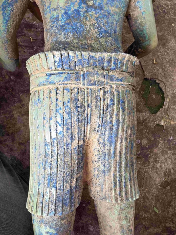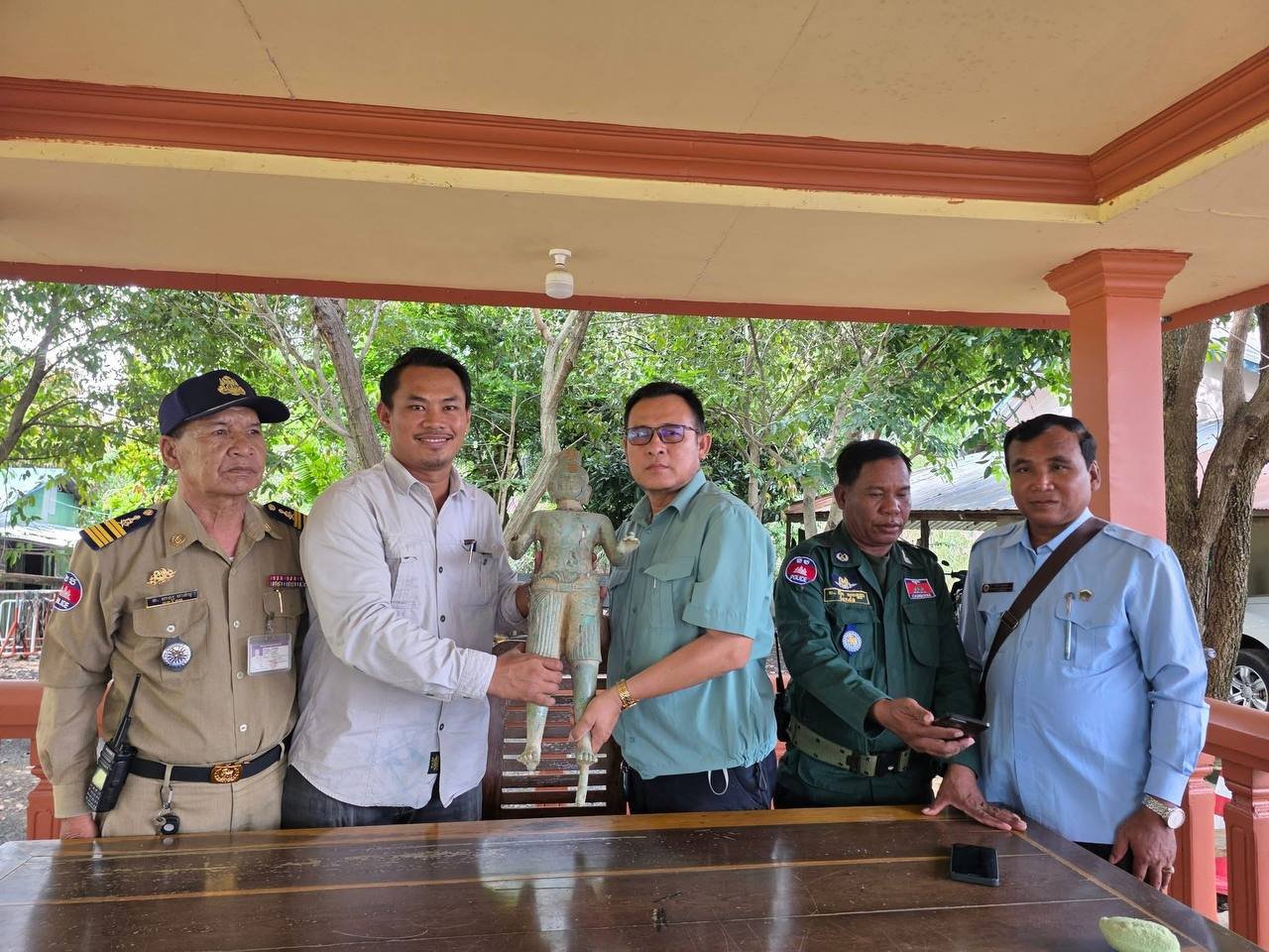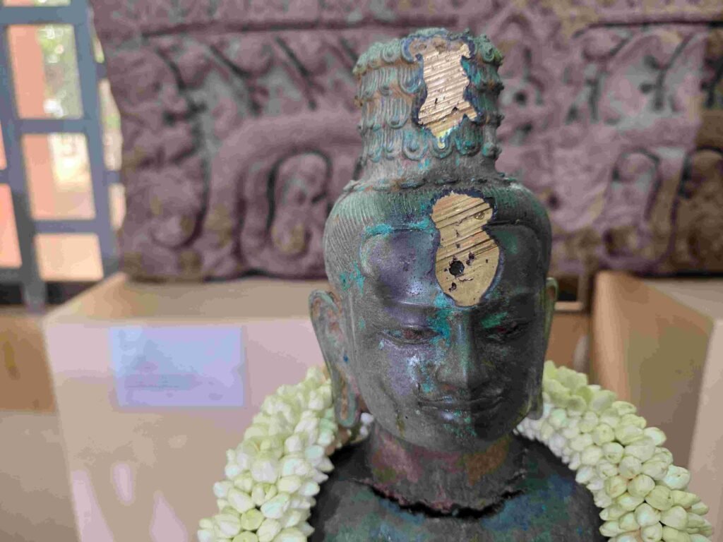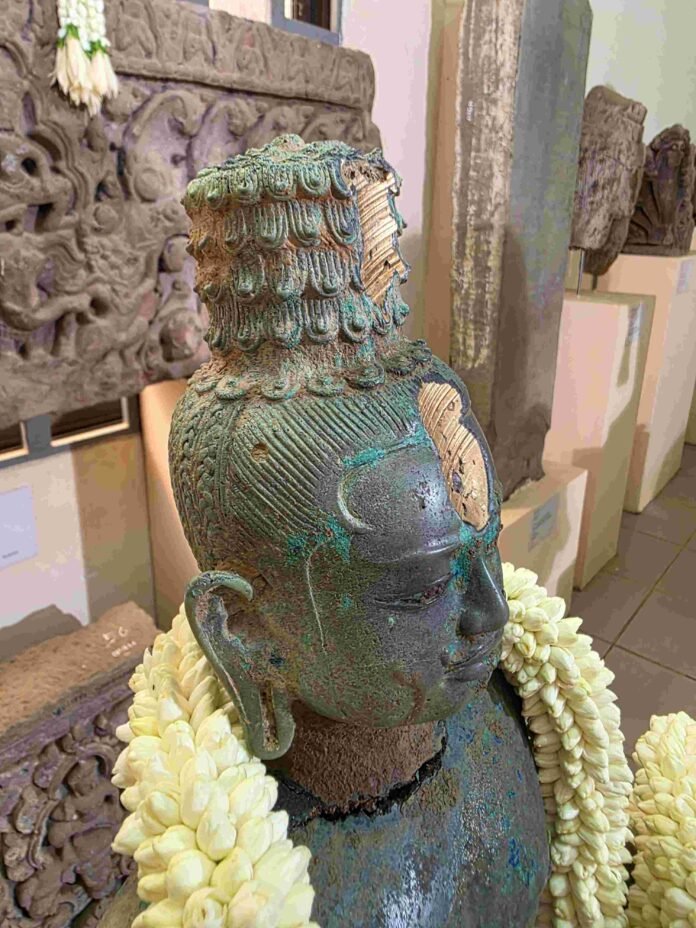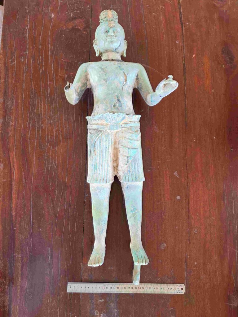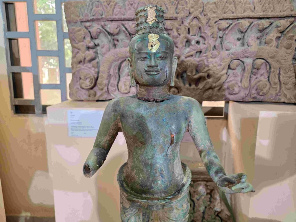 This copper statue was recently discovered in the Kampong Lean area, Santuk district, Kampong Thom province. Preliminary conclusions suggest that the statue likely represents a deity within Mahayana Buddhism, namely the Bodhisattva of Compassion, Avalokiteśvara (Lokeśvara), or the Bodhisattva of Wisdom, Maitreya. It is believed to have been cast between the late 9th and early 10th centuries, likely during the reign of King Yasovarman I (889-910 CE) or King Harshavarman I (910-925 CE?). The site where the statue was found is abundant with ancient temples and mounds, which suggests that this location was once a densely populated urban center during the Angkorian period, with a long history of Mahayana Buddhist practice. អត្ថបទដោយ៖ លោក ម៉ង់ វ់ាលី