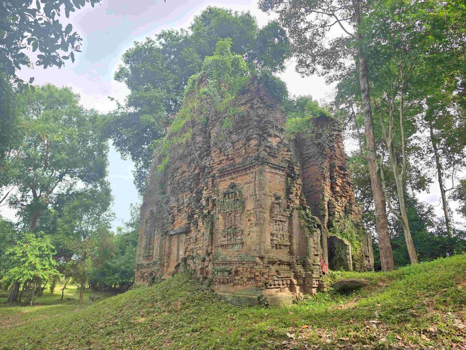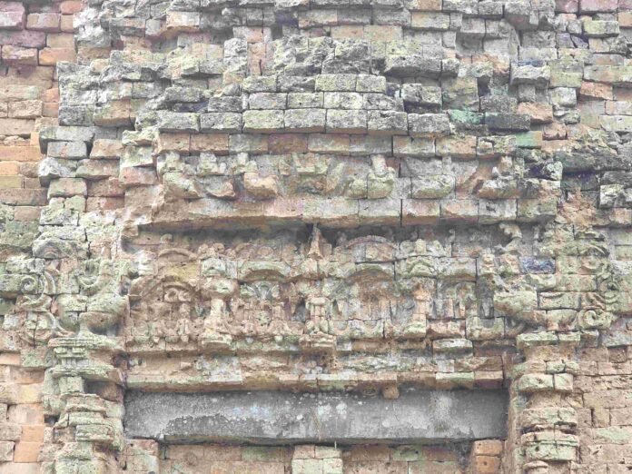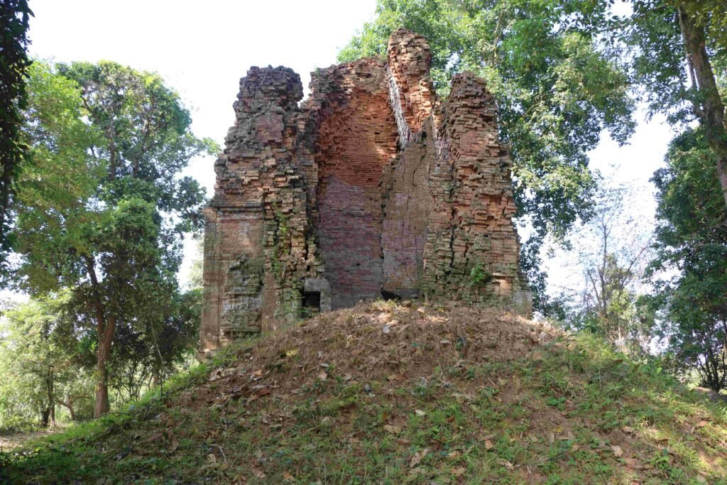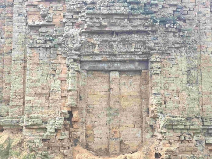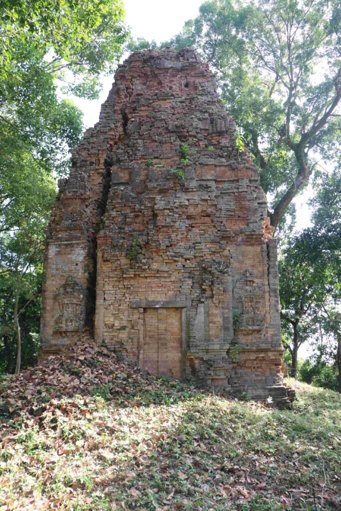ក្រឡេកមកមើលផ្នែកខាងក្រៅប្រាសាទវិញ ផ្នែកដំបូលដែលសេសសល់នៅទិសខាងលិច នាំឱ្យយើងអាចសន្និដ្ឋានថា ប្រាសាទនេះរចនាផ្នែកដំបូលជាថ្នាក់ៗ ដោយបង្រួមខ្នាតពីធំទៅតូច ចាប់ពីផ្នែកខាងក្រោមទៅលើកំពូលបញ្ចប់ដោយការប្រក់ដំបូលមានរាងកោងដូចទូក ពោល គឺមានលក្ខណៈប្រហាក់ប្រហែលប្រាសាទត្រពាំងរពាក់ (ប្រាង្គ Z1) ប្រាសាទជ្រៃ (ប្រាង្គ N18) និងប្រាសាទសណ្តាន់ (ប្រាង្គ N21) ដែលគេស្គាល់ជាទូទៅថាមានលំនាំស្រដៀងសំណង់នៅឥណ្ឌាខាងជើង (វលភី) និងឥណ្ឌាខាងត្បូង (សាលា)។ រីឯផ្នែកខឿនរបស់ប្រាសាទ (ខាងក្រោម) លម្អជាក្បាច់សារពើសូត្រថ្នាក់ៗ ដែលក្បាច់លម្អមួយចំនួនបានរលុបជាច្រើន ប៉ុន្តែយើងអាចនៅមើលឃើញក្បាច់ត្របកឈូក ក្បាច់ផ្កាចន្ទន៍ និងក្បាច់ជើងទៀន។ កាន់តែគួរឱ្យចាប់អារម្មណ៍ នៅតាមទ្វារបញ្ឆោតទាំងបីរបស់ប្រាសាទ គេតម្រៀបឥដ្ឋចេញជារាងស៊ុមទ្វារ ដែលខាងលើទ្រដោយថ្មភក់ និងនៅកណ្តាលស៊ុមទ្វារគេតម្រៀបចេញជាក្បាច់សន្ទះទ្វារ។ ក្នុងចំណោមទ្វារបញ្ឆោតទាំងអស់ គឺមានតែទ្វារបញ្ឆោតនៅទិសខាងជើងប៉ុណ្ណោះ ដែលយើងអាចនៅមើលឃើញការលម្អច្រើនជាងគេ រីឯទ្វារបញ្ឆោតនៅទិសខាងលិច និងខាងត្បូង បានរលុះឥដ្ឋធ្លាក់មកក្រោមស្ទើរអស់ហើយ។ ទ្វារបញ្ឆោតខាងជើងនេះ មាននៅសល់សសរពេជ្ររាងមូល (រចនាបថសំបូរព្រៃគុក) និងមាននៅសល់ផ្តែរទ្វារមួយធ្វើអំពីឥដ្ឋ ដែលនៅខាងលើផ្តែរទ្វារមានលម្អជាចម្លាក់សត្វទេវកថាមានស្លាបទ្រសំណង់អ្វីមួយនៅខាងលើ (រលុបក្បាច់អស់) ដែលប្រហែលជាទ្រហោជាង។ ផ្តែរទ្វារឥដ្ឋនេះ មានរូបសត្វមករបែរមុខចូលក្នុងខ្ជាក់សត្វម្រឹគនិងក្បាច់អង្កត់ធ្នូនៅចុងសងខាង ហើយនៅលើបន្ទាត់ធ្នូមានរាងកោងនេះមានរូបចម្លាក់នៅក្នុងរង្វង់ចំនួន ៣ ដែលលោក Henri Parmentier សន្និដ្ឋានថា នៅកណ្តាលជាចម្លាក់សត្វស្លាប និងនៅសងខាងជាចម្លាក់រូបមនុស្សតូចៗ។ ប៉ុន្តែ បើយើងពិនិត្យឡើងវិញទៅ នៅត្រង់កណ្តាលជាចម្លាក់ហង្ស និងអមសងខាងដោយរូបចម្លាក់គ្រុឌកំពុងលើកដៃប្រណម្យ។ ផ្តែរទ្វារនេះ មានទម្រង់ជាទូទៅដូចទៅនឹងផ្តែរទ្វារផ្សេងទៀតនៃរចនាបថសំបូរព្រៃគុក ដែលមានអាយុកាលចន្លោះពីគ.ស.៦០០ ដល់ ៦៥០។