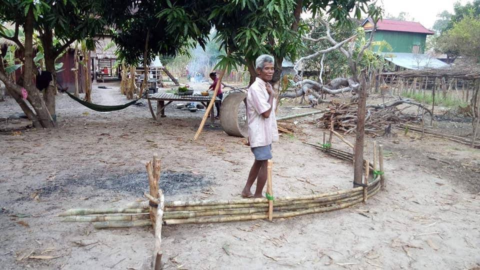 ជាទូទៅ ឧបករណ៍នេះគេធ្វើឡើងពីឫស្សីចំនួន ៧កំណាត់ ដែលមានដងកាន់ចំនួន ១ ចំពាស់ចំនួន៤ និងបំពង់ខ្វែងចំនួន២។ ដូច្នេះ យើងឃើញថាគ្រឿងបង្គុំសម្រាប់ធ្វើឧបករណ៍នេសាទមួយប្រភេទនេះពុំមានលក្ខណៈស្មុគស្មាញអ្វីឡើយ។ ដើម្បីធ្វើឧបករណ៍នេះបាន ជាដំបូងគេត្រូវមានឫស្សីសម្រាប់ធ្វើដងកាន់ប្រវែងប្រហែល ២,៥ម៉ែត្រ ទៅ ៣ម៉ែត្រ។ ដើម្បីបានដងឆ្នុកដែលរឹងមាំនិងប្រើប្រាស់បានយូរអង្វែង គេត្រូវយកឫស្សីសម្រាប់ធ្វើដងឆ្នុកទៅរោលភ្លើងជាមុនសិន ដើម្បីងាយស្រួលពត់ពែនកោងទៅនឹងសាច់អួន។ រីឯចំពាស់ចំនួន៤ ត្រូវមានប្រវែងចំនួន២ ប្រភេទ គឺចំពាស់មួយគូខាងលើដាច់ខាតត្រូវតែវែងជាងចំពាស់មួយគូនៅខាងក្រោមយ៉ាងតិច១០ សង់ទីម៉ែត្រ។ ដូច្នេះមានន័យថា ប្រសិនបើចំពាស់មួយគូខាងលើមានប្រវែង ១,៦ម៉ែត្រ ចំពាស់មួយគូខាងក្រោមត្រូវមានប្រវែង ១,៥ម៉ែត្រ។ ចំណែក បំពង់ខ្វែងរបស់ឆ្នុកត្រូវមានប្រវែងប្រហែល ០,៥ម៉ែត្រ ដែលមានប្រហោងសម្រាប់សៀតចូលចំពាស់ទាំងបួន ហើយខ្វែងសម្រាប់សៀតឬញុកនោះ គេបានរឹតខ្ចៅធ្វើអំពីផ្តៅ ដើម្បីការពារកុំឱ្យបំពង់ខ្វែងបាក់បែក។ ចុងក្រោយ គឺសាច់អួន មានប្រវែង ១,៧ម៉ែត្រ មានរាងបួនជ្រុងដែលមានក្រឡាអួនប្រហែល ២,៥សង់ទីម៉ែត្រ (រូបលេខ១-២)។