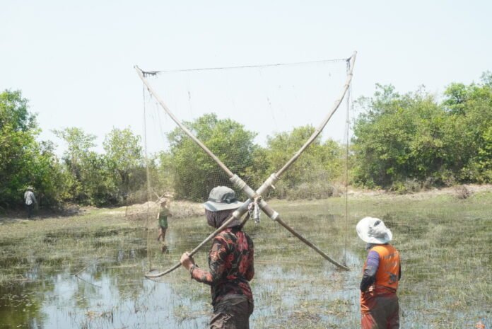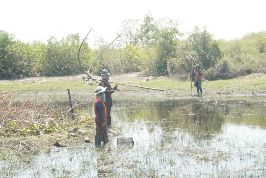 យើងសង្កេតឃើញថា ការនេសាទដោយប្រើប្រាស់ឧបករណ៍ឈ្នក់នៅតំបន់ប្រាសាទសំបូរព្រៃគុក គេធ្វើឡើងជាលក្ខណៈគ្រួសារជាប្រចាំក៏មាន និងនេសាទជាក្រុមធំ (ជាសហគមន៍) នៅក្នុងពិធីឡើងអ្នកតាក៏មាន។ ជាក់ស្តែង គឺការឡើងអ្នកតានៅភូមិជ័យ គេតែងនាំគ្នាទៅនេសាទត្រីនៅបឹងរួមរបស់សហគមន៍មួយកន្លែង ដែលស្ថិតនៅទិសនិរតីដែលមានចម្ងាយពីភូមិប្រមាណ ៥០០ ម៉ែត្រ។ ត្រីដែលនេសាទបានទាំងអម្បាលម៉ាន គេយកទៅពិសារនៅផ្ទះផង និងមួយចំនួនយកទៅផ្គត់ផ្គង់កម្មវិធីឡើងអ្នកតាផង (រូបលេខ១០-១១)។