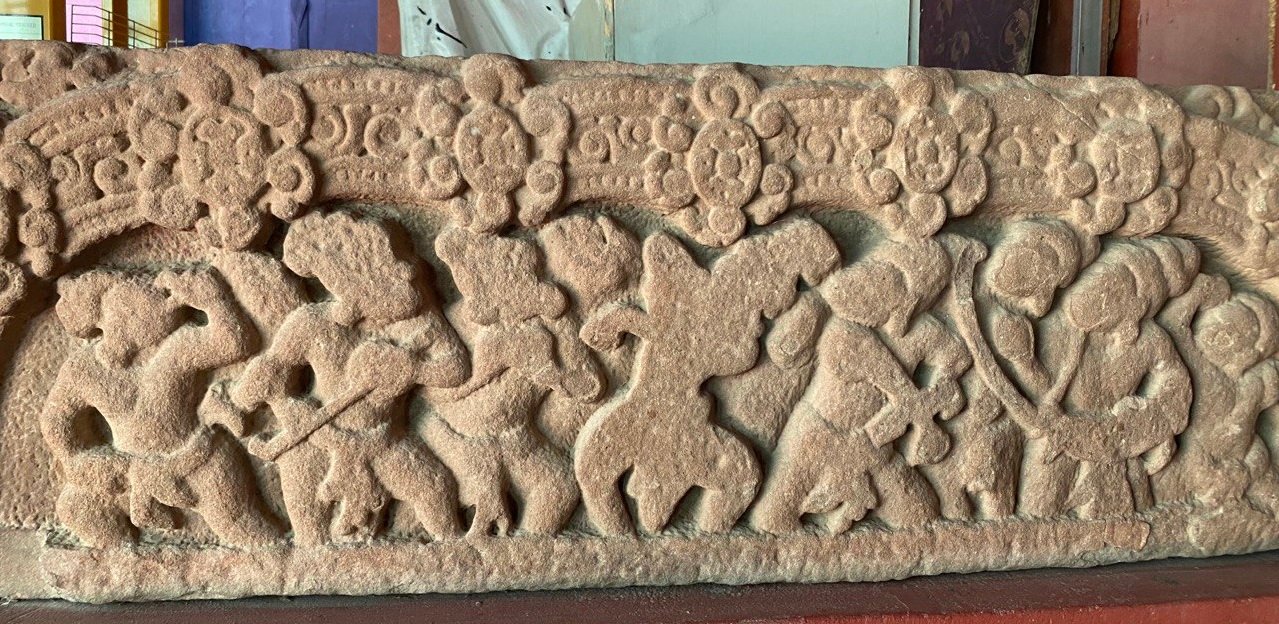 រូបលេខ៣៖ ចម្លាក់អ្នករាំ និងអ្នកភ្លេងលើផ្តែរមកពីវត្តមហរ (វត្តអង្គខ្នារ)