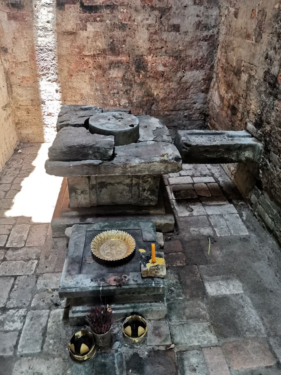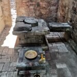 នៅផ្នែកខាងក្នុងប្រាសាទវិញ សិល្បកររៀបជាបន្ទប់សក្ការៈមានរាងបួនជ្រុងទ្រវែង លយចេញមកច្រកចូលខាងកើតបន្តិច ដែលនៅផ្នែកខាងលើទ្វារចូលផ្នែកខាងក្នុងមានតម្រៀបជារាងសាជី។ ចំណែក ជើងទម្រវិញយើងឃើញមានចំនួនពីរ ដែលមានរាងបួនជ្រុងសើ្មដូចគ្នា ហើយនៅខាងជើងភ្ជាប់គ្នាដោយទបង្ហូរទឹកមន្ត (សោមសូត្រ) ហូរចេញទៅខាងក្រៅប្រាសាទ (រូបលេខ៤)។ ជើងទម្រដែលធំជាងគេ គឺជាជើងទម្រដែលតម្កល់ព្រះព្រហ្ម គេធ្វើពីថ្មភក់បួនស្រទាប់ត្រួតលើគ្នា ដែលមានទម្រង់ដូចជើងទម្រដទៃទៀតនៅក្នុងតំបន់ប្រាសាទសំបូរព្រៃគុកដែរ ប៉ុន្តែចំណុចដែលគួរកត់សម្គាល់នោះគឺ មានថ្មរាងមូលមួយដុំដាក់នៅកណ្តាលសម្រាប់ទ្ររូបបដិមាព្រះព្រហ្ម។ ជាទូទៅ នៅសម័យអង្គរ យើងច្រើនឃើញជើងទម្រព្រះព្រហ្មមានរាងមូលតែម្តង ដែលខ្លះមានឆ្លាក់រូបហង្សជុំវិញផងក៏មាន ប៉ុន្តែជើងទម្រនៅប្រាសាទស្រង់ព្រះគេធ្វើជារាងបួនជ្រុងស្មើ ដោយមានថ្មរាងមូលមួយដុំតូចនៅពីលើទៅវិញ។ ទោះបីជាយ៉ាងណា ថ្មរាងមូលតូចខាងលើនេះជាចំណុចមួយដែលឱ្យយើងដឹងថា សិល្បករចង់បង្ហាញអំពីព្រះព្រហ្មភ្ជាប់ជាមួយទម្ររាងមូល។ រាងមូលនេះ យើងពុំដឹងថាវាតំណាងឱ្យអ្វីឱ្យប្រាកដនោះឡើយ តែយើងគ្រាន់ដឹងថាផ្គាំដែលព្រះឥសូរឱ្យព្រះព្រហ្មរាប់ឱ្យអស់នៅក្នុងសាច់រឿងនោះ គឺរាងមូលដូចគ្នាដែរ។ ដោយឡែក បដិមាព្រះព្រហ្មដែលគេតម្កល់នៅក្នុងប្រាសាទនេះ សព្វថ្ងៃគេបានយកទៅរក្សាទុកនិងដាក់តាំងបង្ហាញនៅសារមន្ទីរជាតិភ្នំពេញ (រូបលេខ៥)។ បដិមានេះធ្វើអំពីថ្មភក់ បាក់បែកនៅផ្នែកខាងក្រោមត្រង់ប្រអប់ព្រះបាទ រីឯព្រះហស្តទាំងពីរក៏បាក់ត្រឹមស្មាដូចគ្នា ព្រះភក្រ្តបួន ស្លឹកត្រចៀកវែង បបូរមាត់ក្រាស់ មានផ្នួងសក់ សាច់ដុំមាំមួន និងស្លៀកសំពត់ខ្លីលាត។ បដិមាព្រះព្រហ្មនេះ ទំនងជារូបដែលចាស់ជាងគេនៅក្នុងសិល្បៈខ្មែរ។