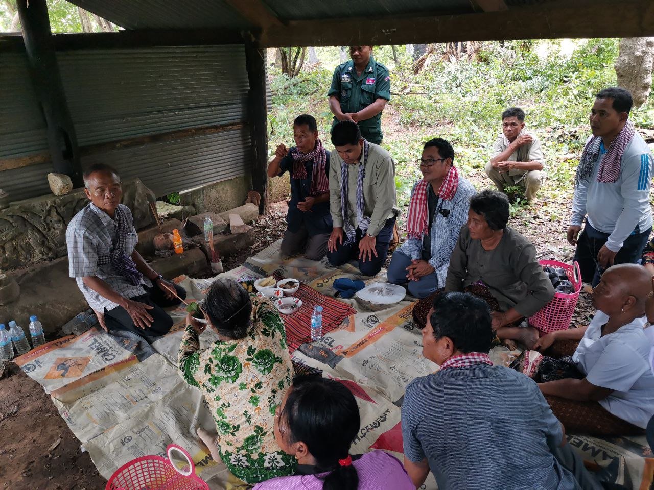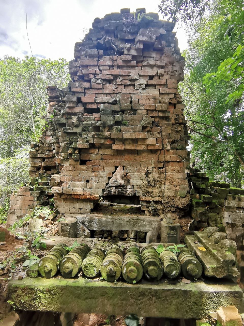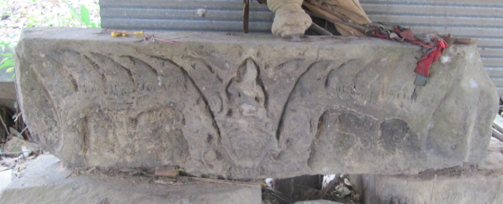 នៅបរិវេណប្រាសាទ មាននៅសល់វត្ថុសិល្បៈធ្វើអំពីថ្មភក់ជាច្រើនដុំ ដែលភាគច្រើនគេរក្សាទុកនៅខ្ទមអ្នកតាចាស់ស្រុកនៅខាងមុខប្រាសាទ (រូបលេខ៥)។ ក្នុងនោះមានផ្តែរទ្វារមួយ ដែលនៅចំពាក់កណ្តាលមានឆ្លាក់រូបទេពកំពុងអង្គុយនៅលើក្បាលរាហូ អមដោយតោពីរឈរហាមាត់ខាំឬលេបក្បាច់បន្ទាត់ធ្នូរាងដូចមែកឈើ ផ្នែកខាងលើនិងផ្នែកខាងក្រោមផ្តែរលម្អជារំយោលផ្កានិងកម្រងមាលា (រូបលេខ៦)។ រូបចម្លាក់ទេពដែលនៅពីលើក្បាលរាហូ យើងមិនដឹងថាជាទេពអ្វីឲ្យប្រាកដនោះទេ ដ្បិតរូបនេះគេប្រមូលចេញពីទីតាំងដើមទៅហើយ តែបើសិនជាផ្តែរនៅទិសខាងជើងអាចជាព្រះកុវេរ ខាងត្បូងជាព្រះយម ខាងកើតជាព្រះឥន្រ្ទ និងខាងលិចជាព្រះភិរុណ។ ម្យ៉ាងវិញទៀត កេតនភណ្ឌ ឬអាវុធរបស់ទេពដែលកាន់ជាប់នឹងព្រះហស្តក៏រលុបពិបាកមើលទៀត តែវាមានលក្ខណៈស្រដៀង “វជ្រ” ដែលអាចសន្និដ្ឋានបឋមថា ទេពកណ្តាលនោះ គឺជាព្រះឥន្រ្ទ។ ក្រៅអំពីផ្តែរនៅមានបំណែកចុងហោជាងរូបមករខ្ជាក់នាគ បំណែកចម្រឹងបង្អួច សសរពេជ្ររាងប្រាំបីជ្រុង ជើងទម្រ មេទ្វារ ។ល។ ក្បាច់លម្អទាំងនេះ មានលក្ខណៈជាសិល្បៈរចនាបថឃ្លាំងឬបាភួននៅក្នុងស.វ.ទី១១ ពោល អាចស្ថិតនៅក្នុងរជ្ជកាលព្រះបាទសូរ្យវរ្ម័នទី១ (គ.ស. ១០០២-១០៤៩)។