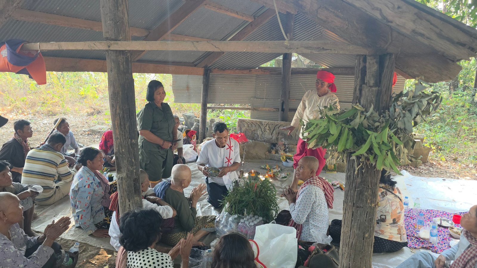 This article examines the Leung Meakh ceremony at Prasat Ballang, Kampong Thom, a site where 11th century Hinduism architecture intersects with contemporary animist practice. Observed annually on the third day of the waxing moon of Meakh, the ritual is centred upon the veneration of the ‘Chas Srok’ (the primary tutelary deity) to ensure communal well-being and agricultural prosperity. A pivotal element of the rite involves the consecration of the ‘Rice Spirit’ (proloeng srov), which is subsequently taken by villagers to their respective granaries to guarantee a bountiful harvest. Significantly, the 2026 proceedings reflected contemporary societal concerns, as the dialogue between the community and the spirit mediums shifted towards national security and the protection of soldiers at the borders. The ceremony concludes with the symbolic expulsion of malevolent forces, illustrating the vital role of the deity as the paramount regional guardian and the essential guarantor of agricultural stability.